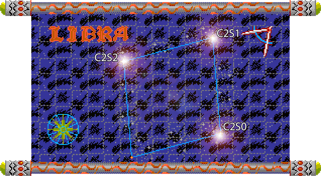Data for drawing the star chart from the Eye Of Infinity screen is stored at locations $2E90C (lines), $2ECDA (star positions) , $2F0F0