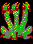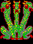 The Hand produces spinning silver stars which require swift action to avoid. If you leave them alone, they split into two – and they can do this twice. During the game, the hand is just shown as the sprite with the outstretched fingers, with the eye sprite overlayed on top of it. During the game over screen, all five frames of the hand sprite are used as it rises from the grave to wave you goodbye.